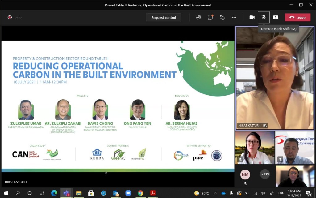MPIA President Davis Chong spoke at the roundtable themed Reducing Operational Carbon in the Built Environment jointly organized by GreenRE, CEO Action Network and Climate Governance Malaysia on 16 July 2021.