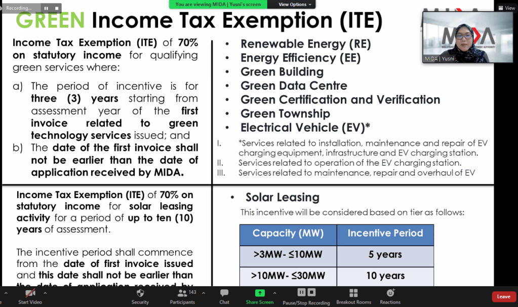 The government’s policy and incentive related to green technology investment were explained during the event. Yusni also elaborated the details of Green Investment Tax Allowance (GITA) and Green Income Tax Exemption (GITE) application.