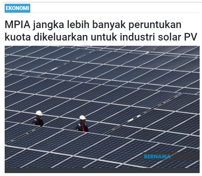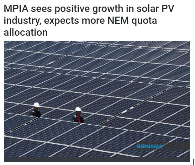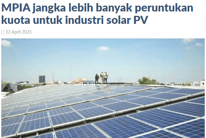 MPIA jangka lebih banyak peruntukan kuota di keluarkan untuk industri solar PV