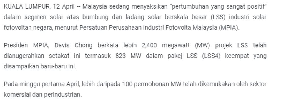 Link : https://focusmalaysia.my/malaysias-solar-pv-industry-poised-for-robust-growth-trajectory/