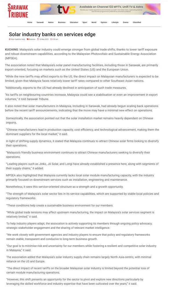 Links : https://www.sarawaktribune.com/solar-industry-banks-on-services-edge/